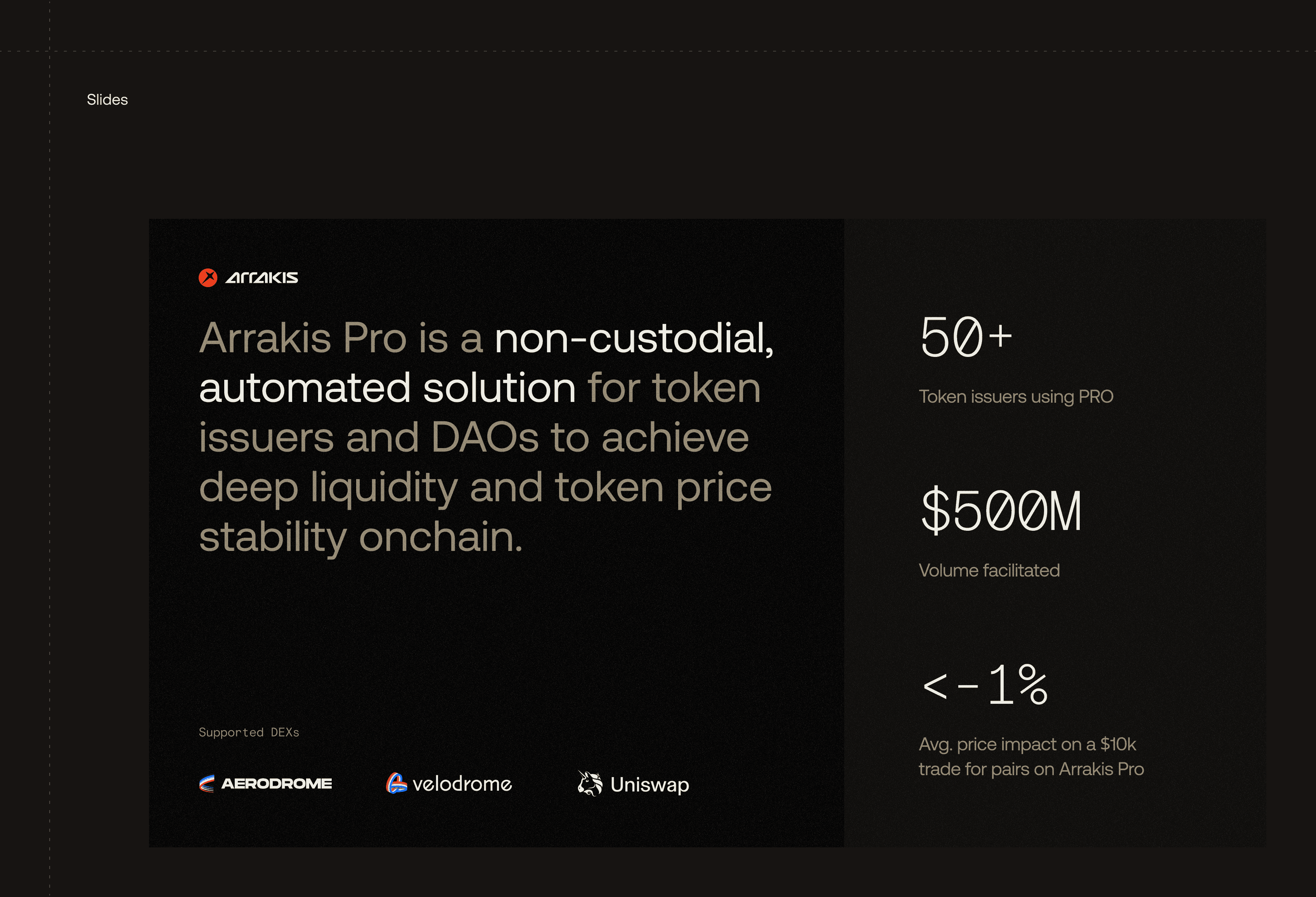 I've worked alongside Arrakis team to elevate their brand and push the first version of Arrakis Pro — a self-serve dashboard where token issuers can manage liquidity pools across Uniswap, Aerodrome, PancakeSwap.