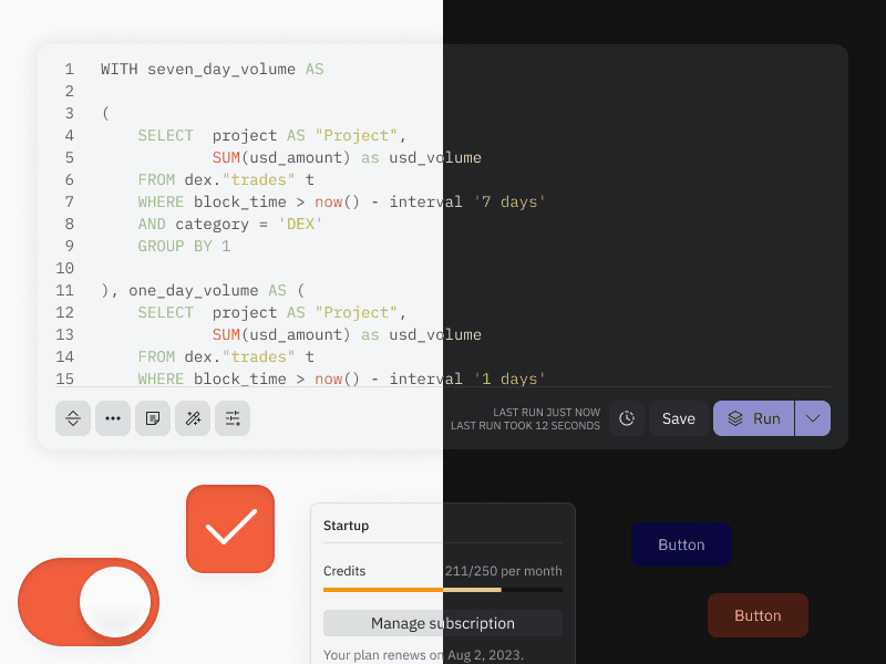 Help teams feel at home when collaborating on crypto data on Dune. We uplifted the overall UI across multiple customer touch points, and kickstarted design system documentation.